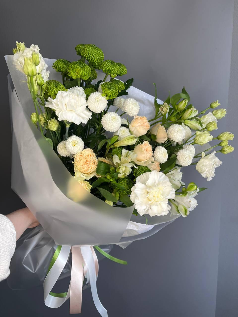 "Нежность весны" — это изысканный букет из розовых и белых цветов, символизирующих пробуждение природы. Идеальный подарок для выражения нежных чувств и восхищения.