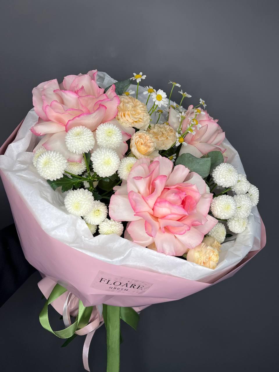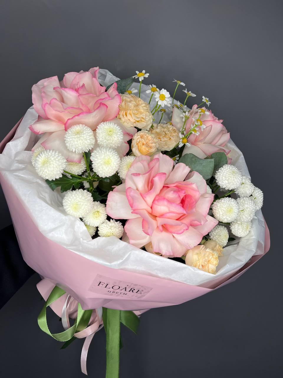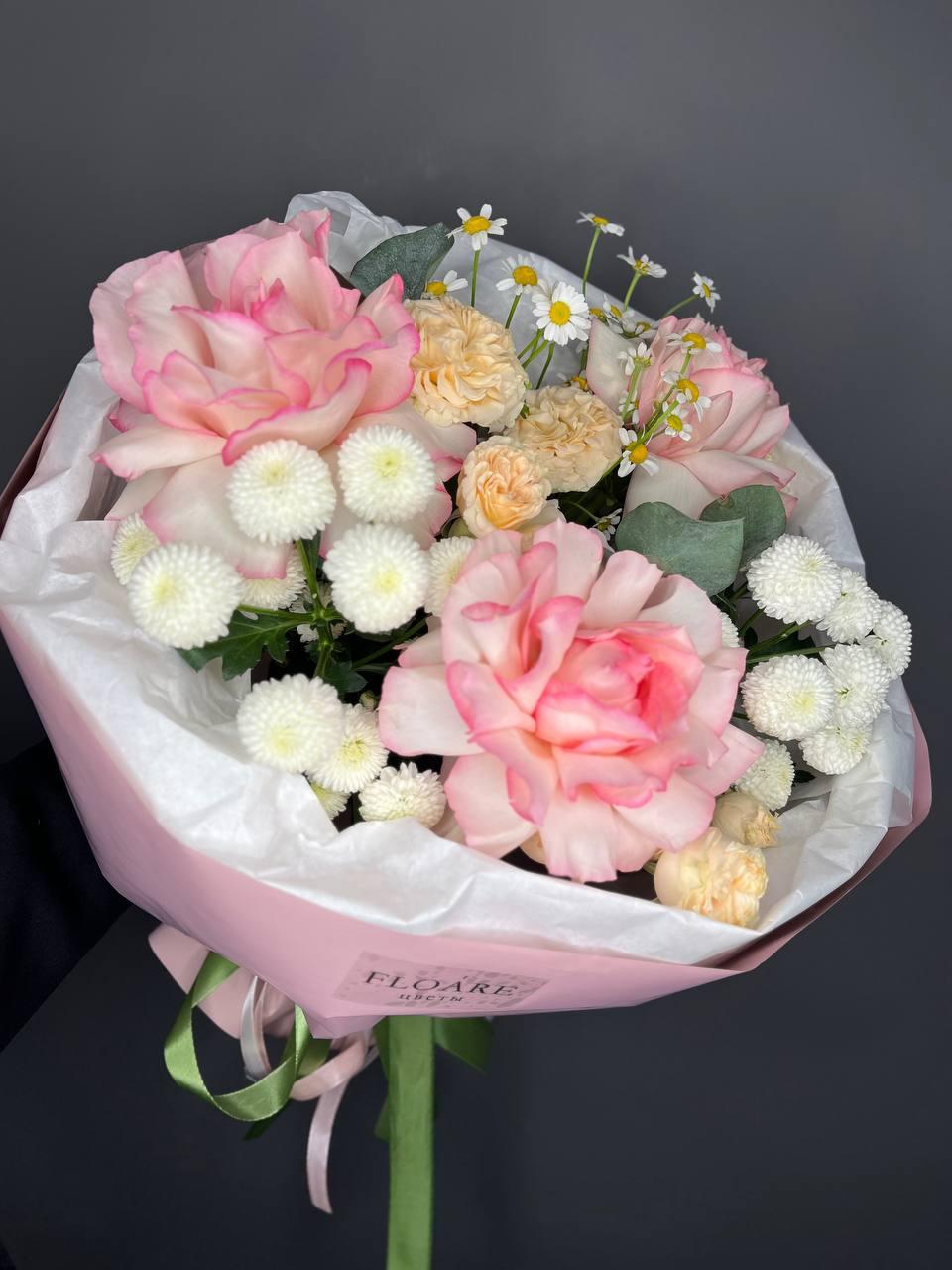 "Весенний букет" — это нежное сочетание розовых и белых цветов, символизирующих пробуждение природы. Идеальный подарок для выражения нежных чувств и радости.